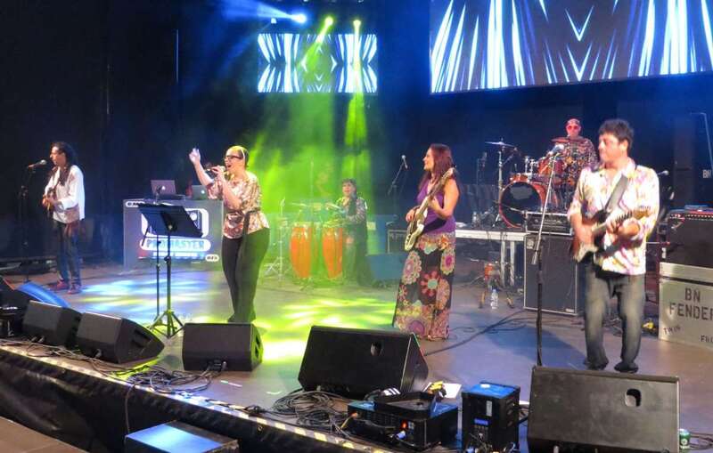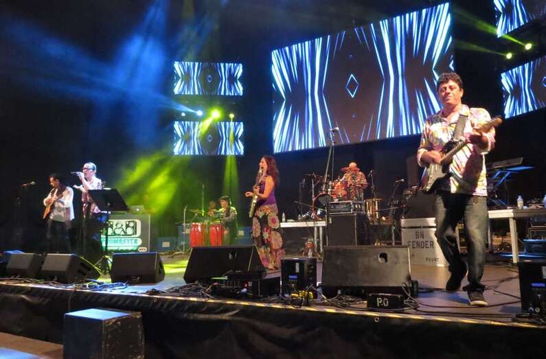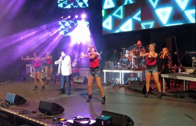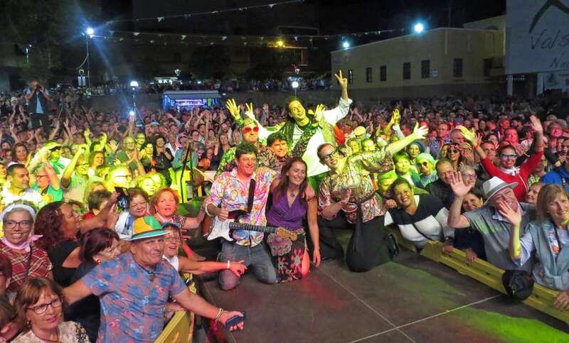 Al ritmo de la música de Georgie Dann y del grupo local Los Flequillos, una entusiasta multitud vibró en la remodelada Plaza de Tifaritti al ritmo de los temas musicales más conocidos de la época.