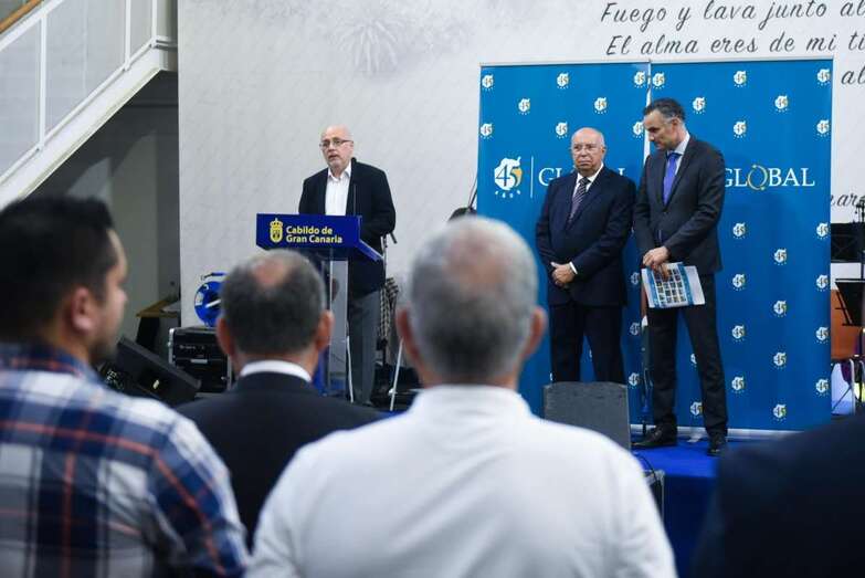 Para recordar el momento histórico en el que se organizó el transporte colectivo de viajeros por carretera creando dos rutas, la centro-norte y sur que asumieron cada una de las empresas, el Patio del Cabildo acogió el acto con la intervención de su presidente, Antonio Morales, el consejero de Transportes y Movilidad, Juan Francisco Trujillo, y el director general de Global, Víctor Quintana, con la asistencia de representantes de los 21 Ayuntamientos de la Isla.