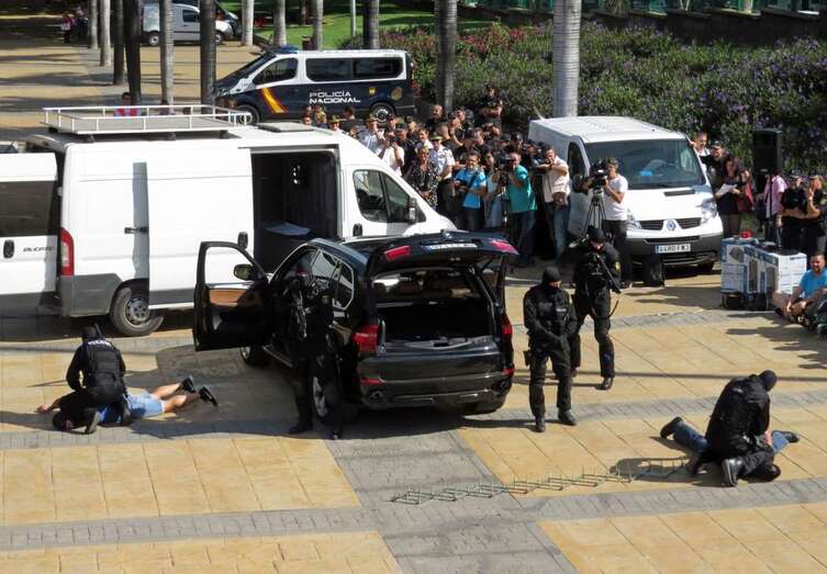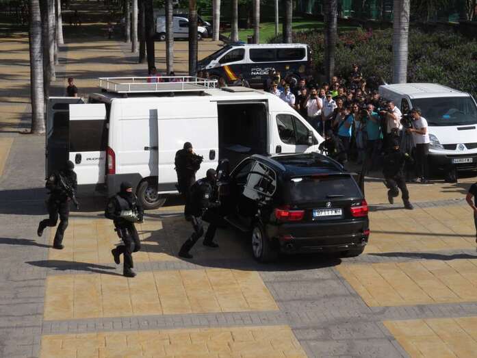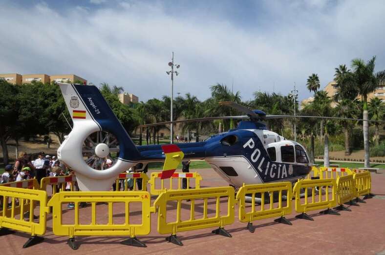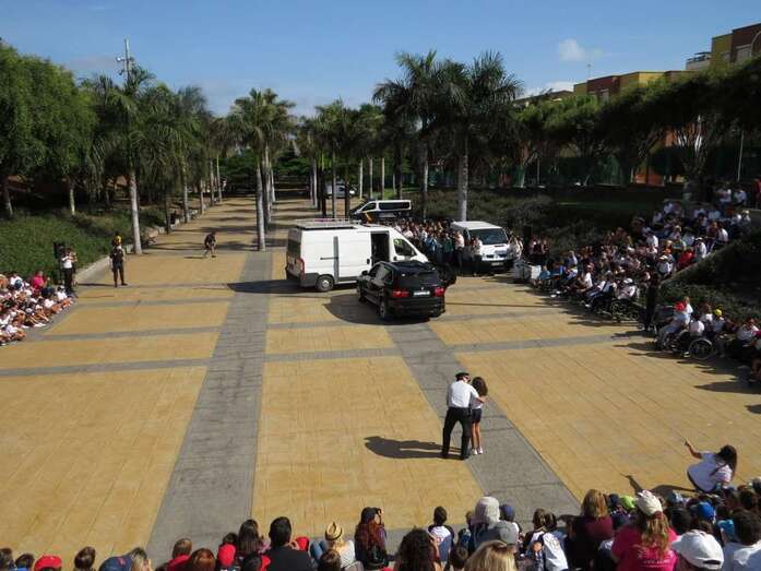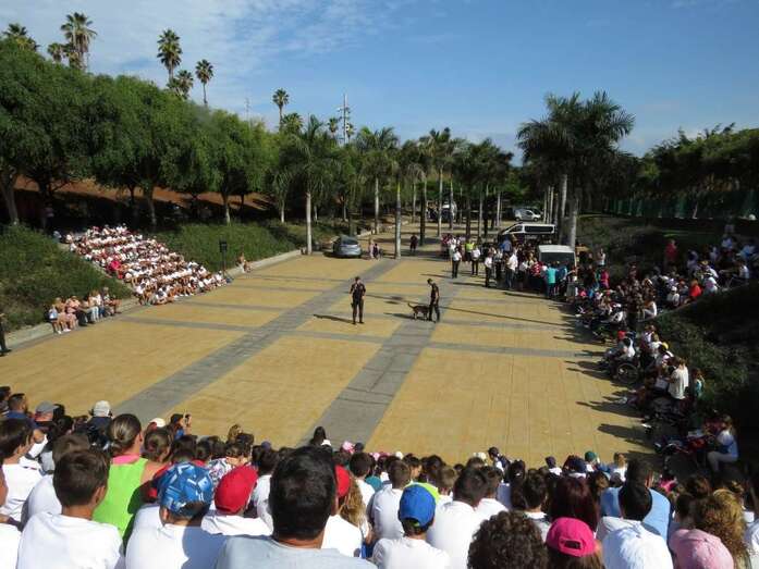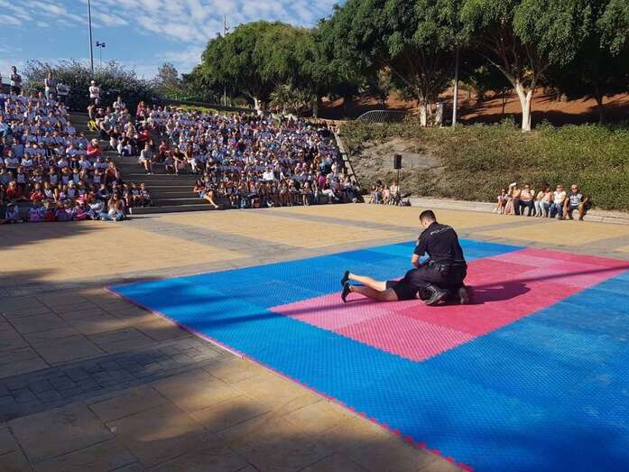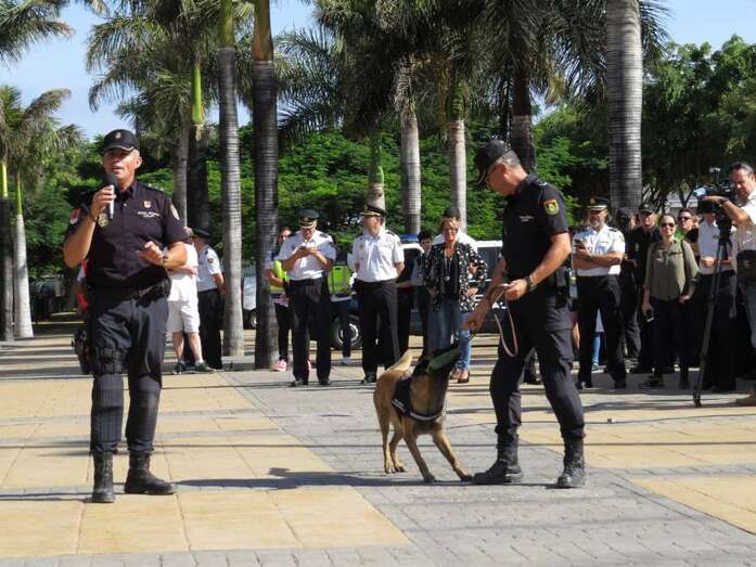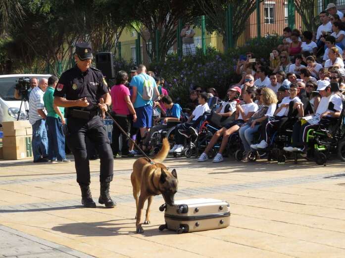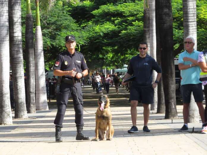 Aunque sin dejar de seguir con atención los ejercicios previos donde funcionarios de la Jefatura Superior de Policía de Canarias mostraron sus habilidades en tácticas de defensa personal o en la intervención de vehículos de supuestos delincuentes ni renunciar a montarse en las motos y demás vehículos exhibidos para la ocasión, unos y otros centraron unánimemente su atención en los actos ante la aparición de ese perro, Pol.