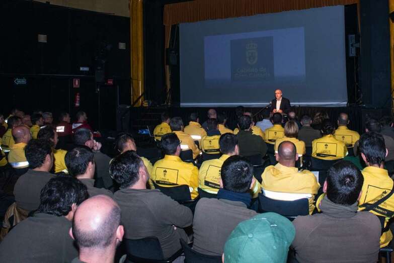 La proyección de un video conmemorativo con imágenes de las brigadas y los helicópteros en acción en distintas intervenciones a lo largo del año fue el inicio de esta jornada de trabajo en la que el presidente repasó todos y cada uno de los equipos que intervienen en todos los procesos para agradecerles su implicación.