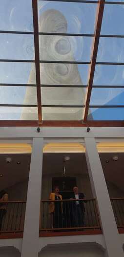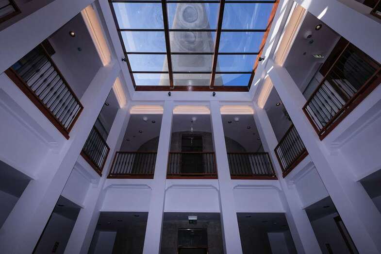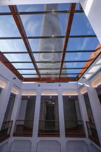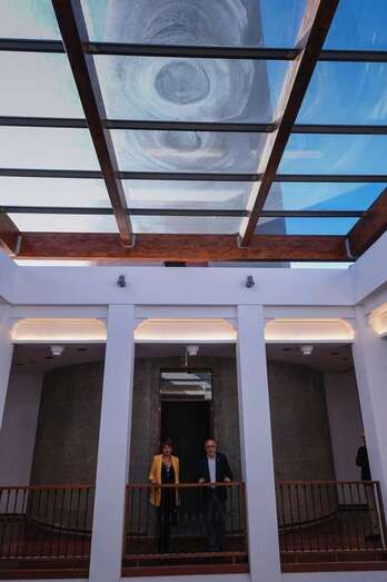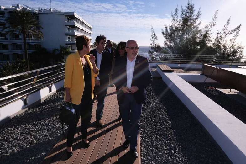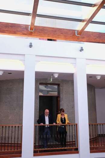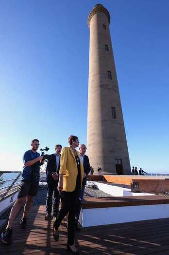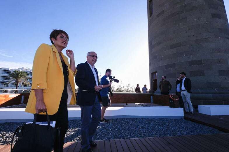 El presidente del Cabildo de Gran Canaria, Antonio Morales, y la consejera de Artesanía, la teldense Minerva Alonso, recorrieron este miércoles su luminoso patio interior de casi cien metros cuadrados desde el que se puede ver la punta del faro y conocieron de manos de los técnicos de la Fedac a qué estará dedicada cada estancia en cuanto se adjudique el proyecto museístico. Hasta ese momento, los visitantes podrán disfrutar de exposiciones de artesanía contemporánea, de la reproducción de las viviendas tradicionales isleñas y de las ricas imágenes de los fondos del Cabildo, todo ello coronado por un mirador que alcanza desde las montañas hasta la playa tras subir por las escaleras de caracol para experimentar la sensación de estar a la vera de la torre del Faro de Maspalomas, que aún sigue en funcionamiento a 58 metros de altura.