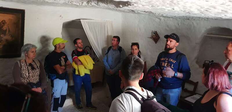 Maravillados por la vivencia y hasta puestos por un instante en la piel de los faycanes encargados de las observaciones, el grupo fue conducido al poblado troglodita de Acusa al tiempo que conoció de la mano del arqueólogo un sinfín de detalles, como que la primera ermita se encontraba en estas cuevas y que la iglesia que hoy se alza entre palmeras es la tercera, pues la segunda era de 1670 y quedó sumergida el siglo pasado cuando se construyó la presa, una curiosidad que ya casi nadie conoce fuera del lugar.