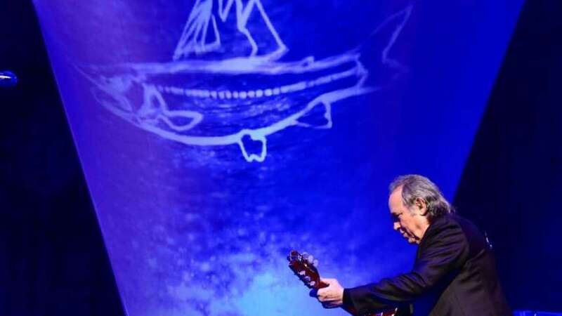 Momento de la actuación de Joan Manuel Serrat, anoche en el Gran Canaria Arena (Foto TA) Momento de la actuación de Joan Manuel Serrat, anoche en el Gran Canaria Arena (Foto TA)