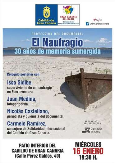 Telde.- El Cabildo de Gran Canaria proyectará el documental El naufragio. 30 años de memoria sumergida, que repasa tres décadas del drama de la inmigración en el Estrecho y en Canarias a través de los testimonios de periodistas, fotógrafos, supervivientes de naufragios, activistas y antropólogos.