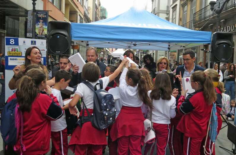Las Palmas de Gran Canaria.- Más de mil doscientos escolares de las ocho islas se han reunido este viernes en la capitalina calle de Triana para participar en la cuarta edición de De Palique, una iniciativa que permite al alumnado de Canarias mostrar el trabajo que realiza en sus radios escolares y participar en un encuentro con las principales emisoras del Archipiélago.