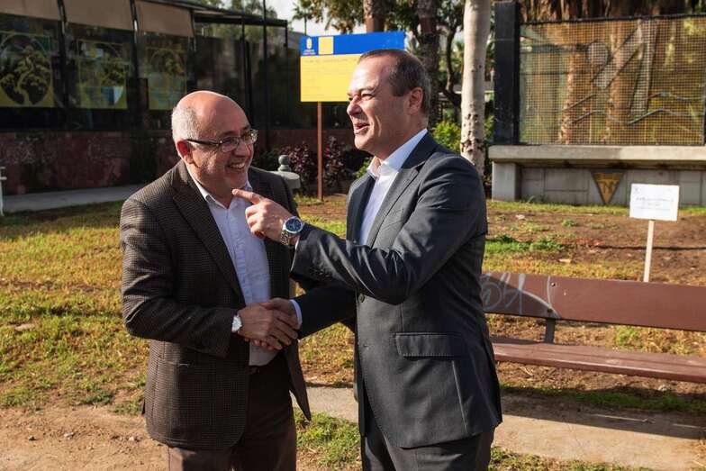 El presidente del Cabildo, Antonio Morales, y el alcalde de Las Palmas de Gran Canaria, Augusto Hidalgo, junto al concejal de Nuevas Tecnologías, Administración Pública y Deportes, Aridany Romero, se han acercado este jueves a conocer los detalles de esta intervención, impulsada desde el Instituto Municipal de Deportes (IMD) y ejecutada por la empresa Tecyr Construcciones y Reparaciones, S.A, que tenía destinados 175.000 euros y cuya diferencia será usada por el Consistorio para otras necesidades municipales.