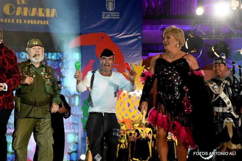 Oper Canarios presenta el espectáculo Tin ton tin… Atención Señores carnavaleros, Abrochaos los cinturones porque vienen turbulencias de Drag Ácrux, que llevará un diseño de Nancy Henríquez.