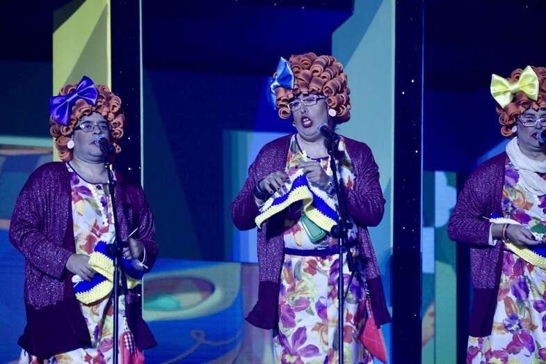 Los periodistas Rebeca Paniagua, de Televisión Canaria, y David Perdomo, de Cadena SER Las Palmas, han conducido esta primera gala festiva en la que también han sonado los canciones del popularísimo Pepe Benavente, los desternillantes cuplés de la Chirimurga del timple y su espectáculo «Servicio 24 horas», el simpar homenaje a Carmen Miranda a cargo de los queridos Xayo, Momix, Pedro Daktari y Miss Claudia, el ritmo y el color de la comparsa Aragüimé y las canciones de la murga Los nietos de Kika.