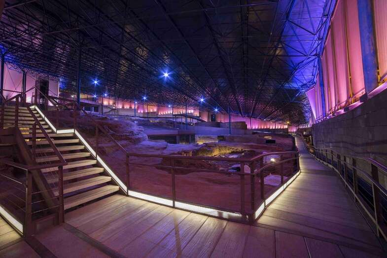 El nuevo y dinámico diseño de iluminación del espacio arqueológico que gestiona la Consejería de Cultura del Cabildo grancanario en el municipio de Gáldar, se ha implantado tanto en todos sus espacios públicos (área de acogida de visitantes y salas de exposiciones) como en el propio parque arqueológico en toda su extensión (poblado, cámara policromada, pasarelas que recorren el enclave patrimonial y cerramiento textil perimetral).