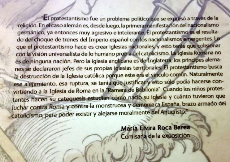 El Protestantismo fue un problema político que se expresó a través de la religión. En el caso alemán es, desde luego, la primera manifestación del nacionalismo germánico, ya entonces muy agresivo e intolerante, El protestantismo es el resultado del choque de trenes del imperio español con los nacionalismos emergentes. Lo que el protestantismo hace es crear iglesias nacionales, y esto tenía que colisionar con la visión universalista de lo humano propia del catolicismo. La Iglesia Romana no es ninguna nación. Pero la Iglesia anglicana es de Inglaterra, los príncipes alemanes se declararon jefes de sus propias iglesias territoriales”.