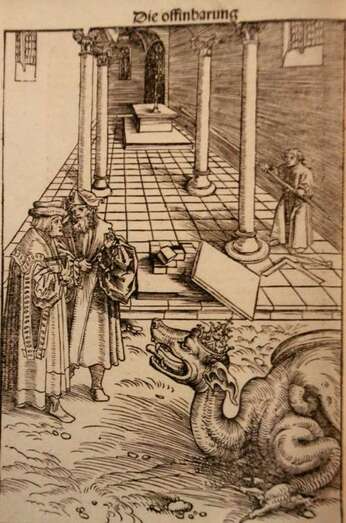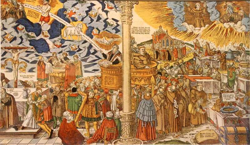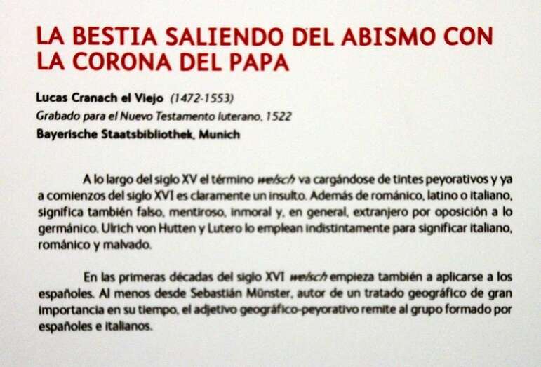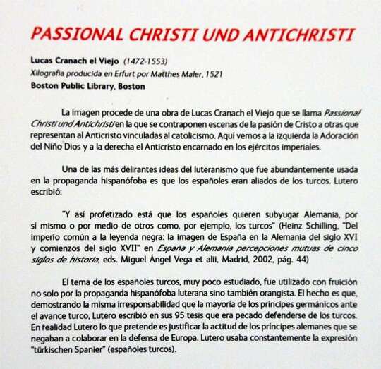 El más largo y complejo de los ejes temáticos que vertebran la exposición tiene que ver con los procedimientos propagandísticos que sirvieron no sólo para expandir lo que conocemos como Reforma, sino también para denigrar moralmente al enemigo encarnado en el Papa y el Emperador, La propaganda luterana fue una novedad absoluta en la Europa de su tiempo. Su virulencia y grosería escandalizaron a Erasmo y Tomás Moro.