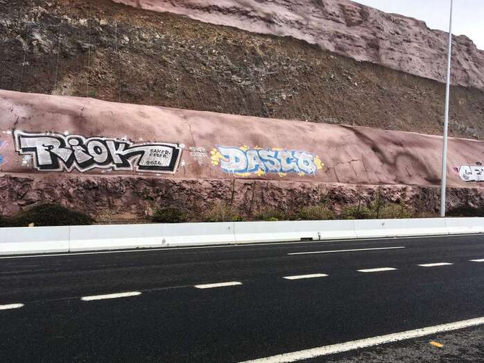 Las Palmas de Gran Canaria.- El Cabildo de Gran Canaria ha trasladado a la Guardia Civil un inventario de casi 900 grafittis en la GC-1 y la GC-2 de diversos autores, un trabajo exhaustivo enmarcado en su Plan de Recuperación Paisajística de estos corredores en los que la Institución insular ha acometido diversas acciones y para los que ya tiene consignados más de 10 millones de euros, pero que están "jalonados" por estas pintadas que incluso reaparecen una vez pintados muros y paredes.