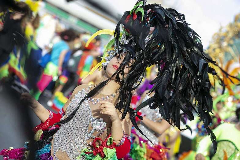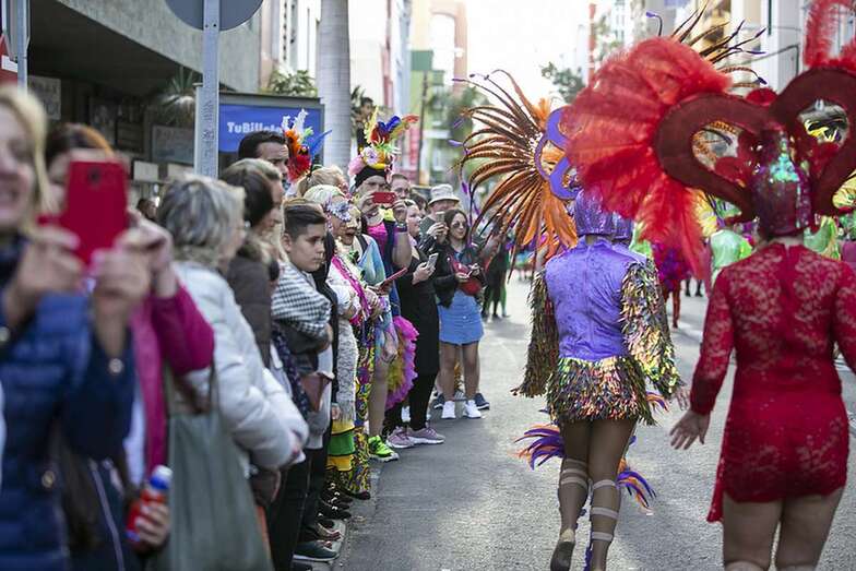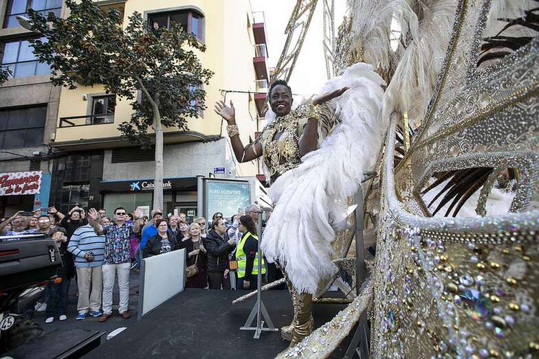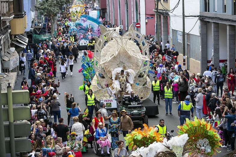 Telde.- La Gran Cabalgata del Carnaval de Una noche en Río ha reunido a unas 200.000 personas en las calles de Las Palmas de Gran Canaria, en uno de los actos más multitudinarios de las fiestas. El desfile de 101 carrozas (y otras 11 de los patrocinadores) partió del Castillo de La Luz a la hora prevista, las 17.00 horas: los primeros vehículos comenzaron a llegar al Parque San Telmo en torno a las 20.30 horas.