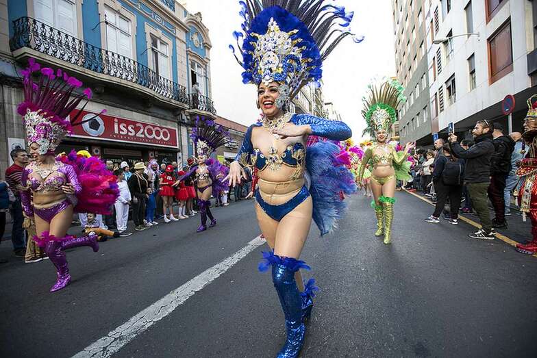 Miles de teldenses disfrutan en la capital del gran coso carnavalero de 'Una noche en Río'