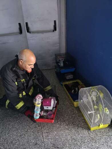 Los bomberos de la capital han estado sofocando el fuego e intentando salvar la vida de los animales que se hallan en el interior del local.
