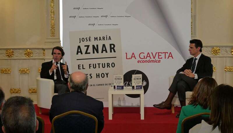 Telde.- El ex presidente de Gobierno de España José María Aznar presentó hoy en el Gabinete Literario de la capital grancanaria su libro El futuro es hoy, acto en el que estuvo acompañado por el ex ministro y ex presidente del PP de Canarias José Manuel Soria.