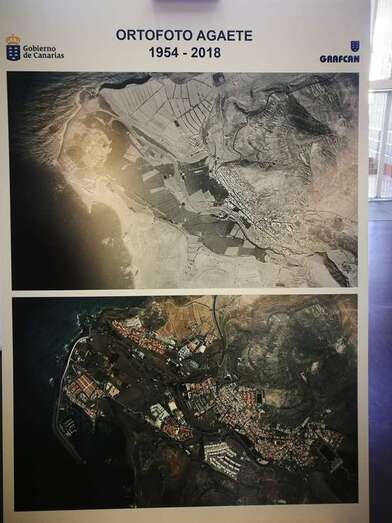 En estas ortofotos puede contemplarse Agaete con y sin el Puerto de Las Nieves, además del crecimiento del casco con la consiguiente pérdida de zonas de cultivo. Esta situación, la de pérdida de zonas agrarias en sustitución de espacios urbanos, se aprecia también en Arucas y en Agüimes al igual que en Telde, con una imagen de los barrios de San Juan y Los Llanos y con la antigua carretera que unía la capital y el sur.
