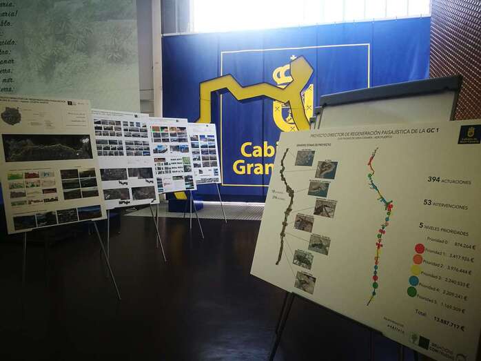 Seis de estos paneles corresponden a las iniciativas entre la capital y San Bartolomé de Tirajana y los otros cuatro desde la capital hasta Agaete, con una comparativa del estado actual y de cómo quedará tras las intervenciones, algunas de ellas ya en ejecución con seis millones de euros.