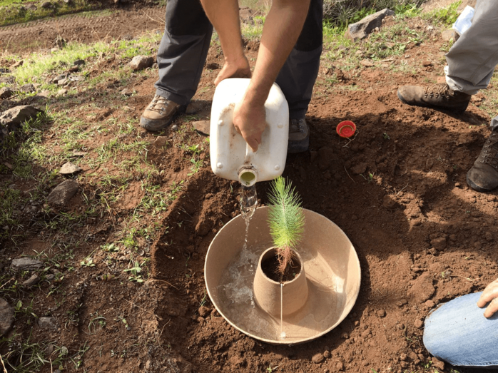 El método consiste en reemplazar las técnicas tradicionales de riego por un dis-positivo de riego por absorción desarrollado y mejorado por el propio proyecto, una especie de despensa de agua denominada ‘cocoon’ que se entierra junto al árbol con más de veinte litros de agua y dos cordones que van suministrando el agua por “capilaridad”, un sistema que es más eficiente, de bajo coste, garantiza el riego, se rellenable y totalmente biodegradable.