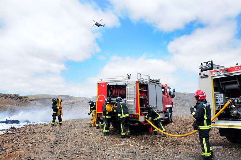 Telde.-Las primeras impresiones y datos sobre el simulacro de accidente aéreo llevado a cabo este mediodía en el municipio de San Bartolomé de Tirajana, en las cercanías de Lomo Perera, fueron bastante positivas, sobre todo en cuanto a tiempo de reacción de los diferentes cuerpos de seguridad y estamentos que tomaron parte del mismo.