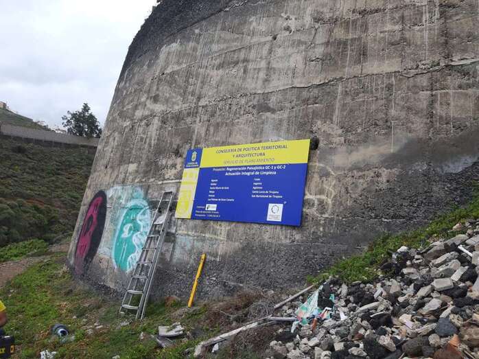 La siguiente intervención, que comenzará en los próximos días, será la retirada de más de 800 grafitis que jalonan las dos vías en una superficie de 12.850 metros cuadrados, es decir, más de 42 canchas de tenis. En esta acción se incluye también al municipio de Mogán.