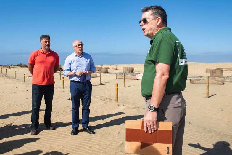 "Estamos ante un proyecto científico de referencia mundial, no hay una propuesta de estas características en el mundo relativa a una actuación en unas dunas áridas como la que se está realizando en Maspalomas", subrayó este pasado lunes el presidente insular, Antonio Morales, junto al consejero de Medio Ambiente, Miguel Ángel Rodríguez, quienes elogiaron la implicación del personal encabezados por Miguel Ángel Peña y Orlando Marrero.