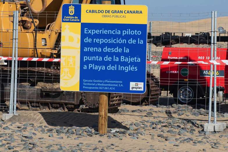 El Cabildo extrajo para ello 20.000 metros cúbicos en la primera fase para situarla en la "casilla de salida" del circuito, tal como explicó Peña, técnico insular responsable de Masdunas, quien recordó que se trataba de material que hubo que cernir para retirar la gran cantidad de callaos que contenía, pero en esta ocasión la arena amontonada por la naturaleza en la orilla no contiene piedras, lo que facilita tanto el trabajo que en apenas cinco días ya han sido retirados más de 4.300 metros cúbicos de arena, casi la cuarta parte de la prevista en esta fase.