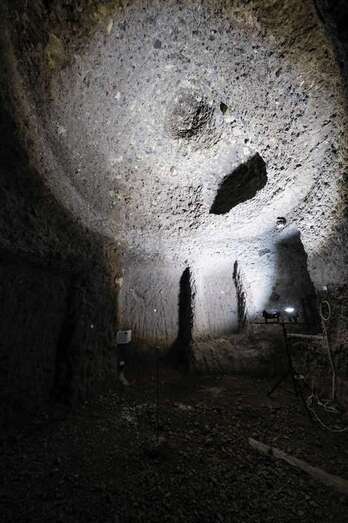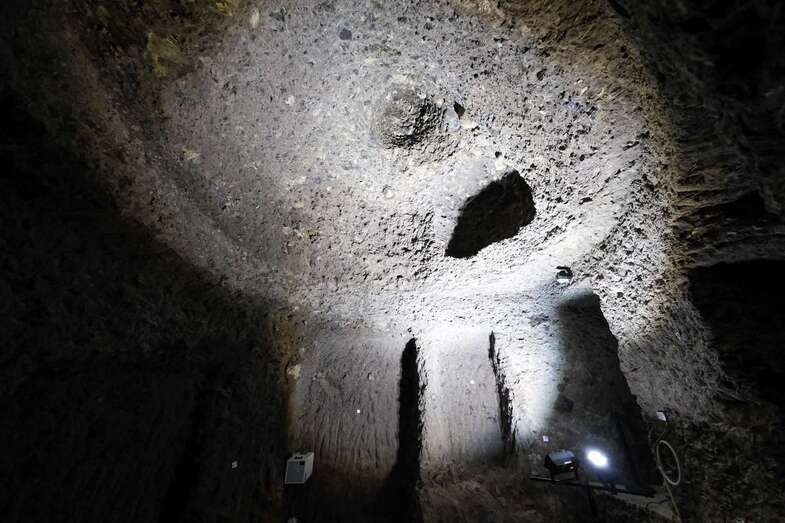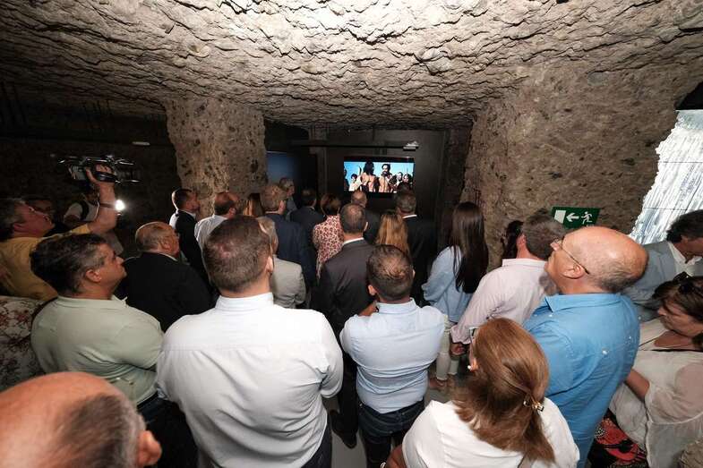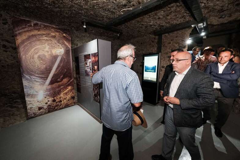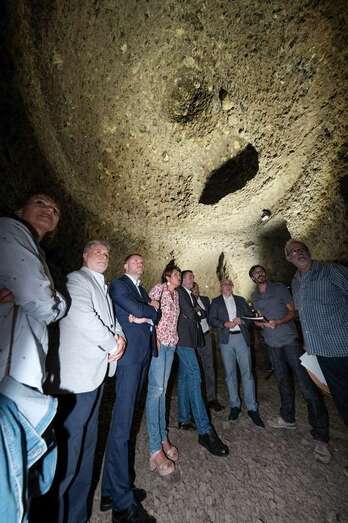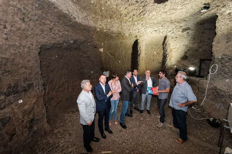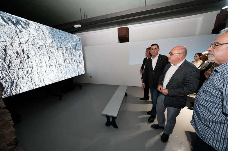 Guiados por el coordinador del proyecto, José de León, los congregados recorrieron las salas del Centro de Interpretación, que supone recorrer bajo tierra cuevas hasta llegar al lugar en el que quedará instalada la réplica de Risco Caído, una enorme oquedad que ya muestra la silueta de la original y que será idéntica cuando la instale Fastum Arte, una de las mejores empresas del mundo en el sector y que ha trabajado en la réplica de tumbas egipcias, entre otras reproducciones de valiosos vestigios.