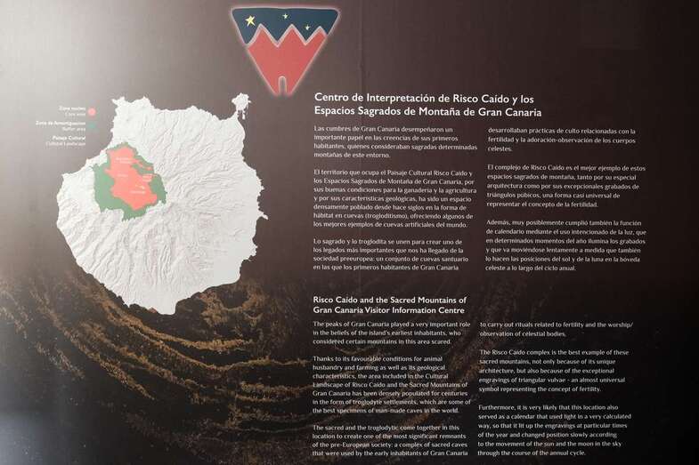 La última sala es un homenaje a las personas que han heredado y mantenido todo un legado oral y cultural directamente procedente de los aborígenes para acabar el recorrido, ya completamente inundados por el espíritu de los antepasados de Gran Canaria, en la mágica neocueva de Risco Caído, donde el fenómeno del haz de luz del Sol al fecundar la tierra y recorrer sus triángulos públicos podrá ser disfrutado sin dañar la original.
