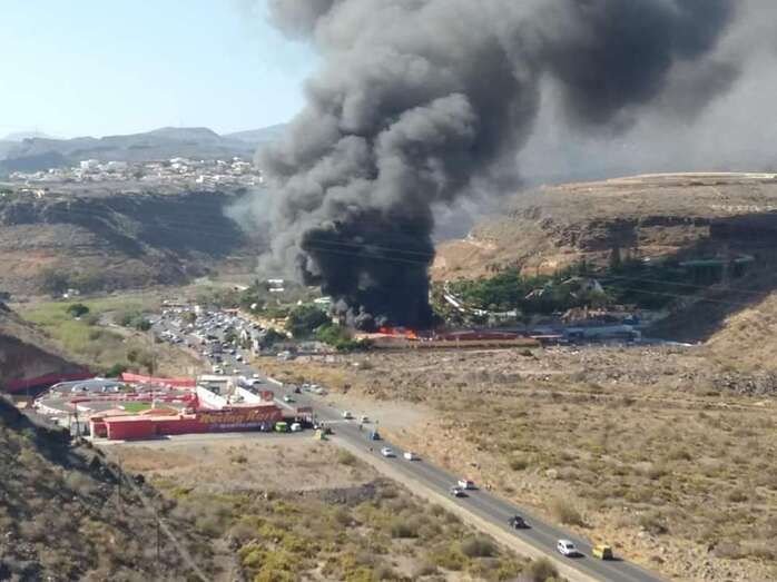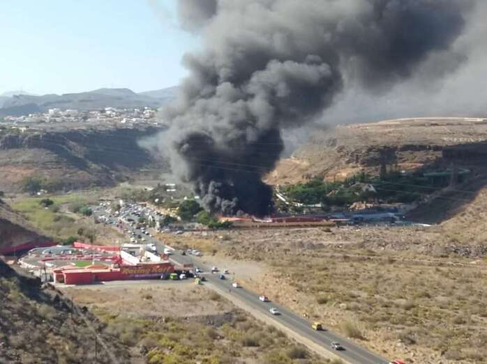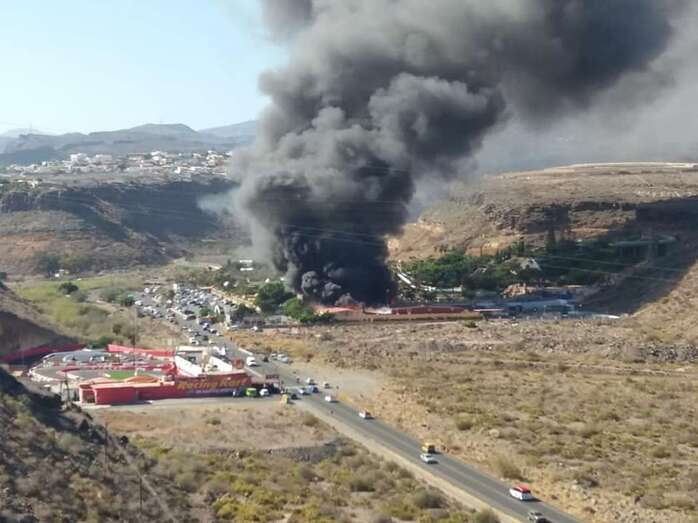 Telde.- El establecimiento ubicado en la carretera de Palmitos Park, junto al centro de ocio Aqualand Maspalomas, comenzó a arder en torno a las 17.30 de este lunes. Los bomberos revisan el interior por si hubiera personas dentro. El SUC ha atendido a una personas con quemaduras en una pierna.