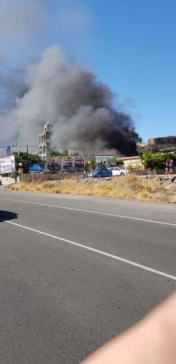 Bomberos de San Bartolomé de Tirajana trabajan en la extinción de las llamas y revisan el recinto para descarta que hubiesen personas dentroen el momento del incendio. En la nave se acumulan todo tipo de basuras y desechos que han facilitado la rápida extensión del fuego. Una persona ha tenido que ser atendida por el personal sanitario del Servicio de Urgencias Canario (SUC) con quemaduras en una pierna. Al lugar se han desplazado agentes del Cuerpo Nacional de Policía, Bomberos y Policía Local de San Bartolomé de Tirajana y una ambulancia de soporte vital básico del Servicio de Urgencias Canario (SUC). La intensa humareda ha sido visible desde varios kilómetros de distancia, como desde la misma Charca de Maspalomas.