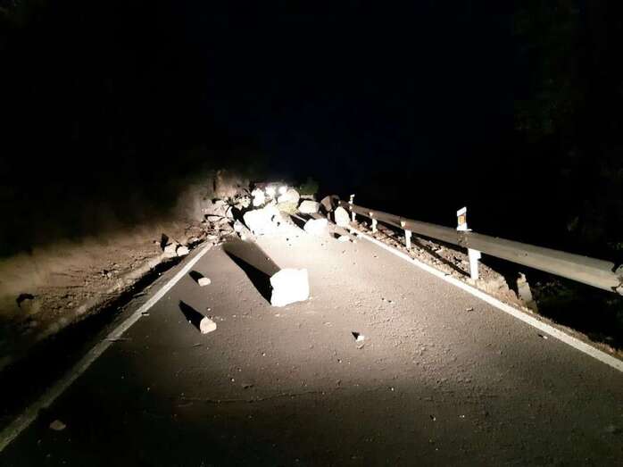 Carreteras sigue actuando en el lugar del desprendimiento y la vía permanecerá cerrada entre la intersección de La Solana-Espinillo y la de El Carrizal-Juncal hasta que sea asegurada la zona. EFE