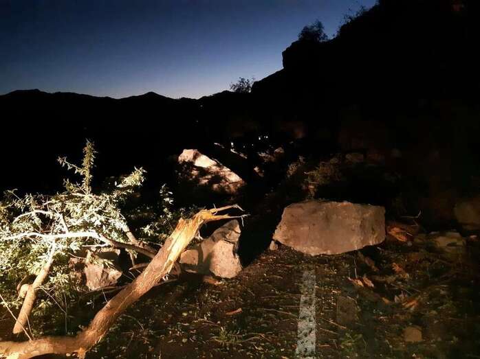 Cierre de la carretera de Tejeda a Ayacata por desprendimientos
