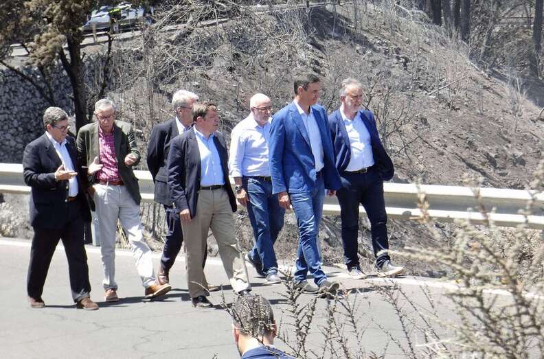 En compañía de Torres y de algunos de los técnicos que han dirigido la lucha contra las llamas, Sánchez ha recorrido el barranco de Los Pajaritos, el lugar donde hace seis días comenzó un incendio que tardó poco en convertirse en un "tsunami de fuego", como se lo definió el domingo y el lunes.