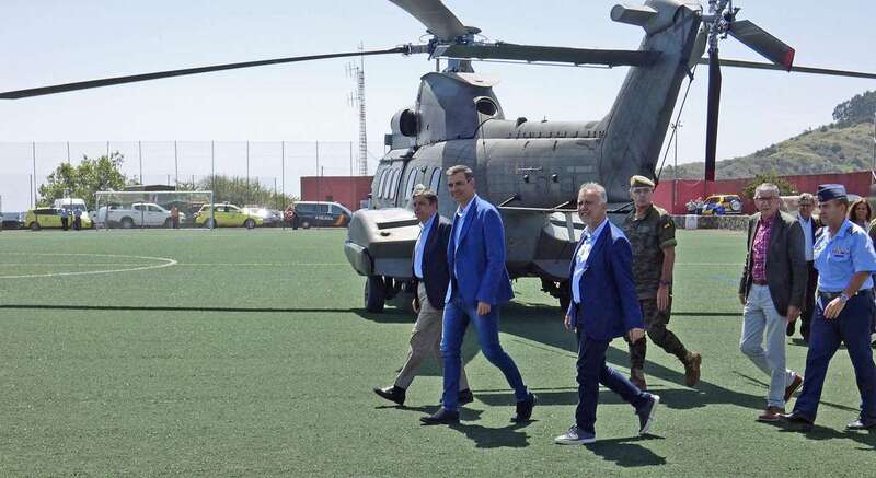 Con la batalla contra el fuego a punto de ganarse tras el mayor despliegue de medios forestales que Canarias ha visto en toda su historia, Sánchez ha sobrevolado en un helicóptero del Ejército los más del cien kilómetros de perímetro que tiene el área carbonizada.