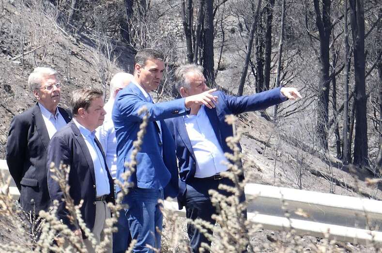 Sánchez ha visitado este jueves Gran Canaria, isla en la que se trata de controlar un incendio declarado hace seis días que quedó estabilizado este miércoles y que ha afectado al 8% de su superficie, al quemar unas 9.200 hectáreas, lo que ha obligado a evacuar a unas 10.000 personas, que en su mayoría ya están realojadas.