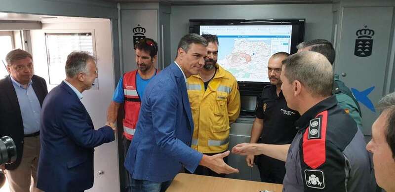 Tras sobrevolar el área afectada por el fuego en un helicóptero del Ejército junto al presidente canario, Ángel Víctor Torres, Sánchez ha manifestado su reconocimiento "a los héroes anónimos" que en muchos casos, ha dicho, "se han jugado la vida" para garantizar que esta catástrofe ambiental no provocara daños entre la población.