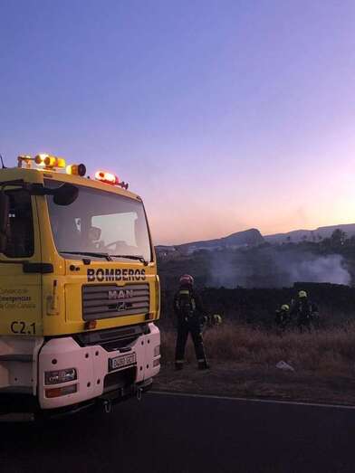 Efectivos del Consorcio de Emergencias de Gran Canaria acudieron al lugar para sofocar las llamas.