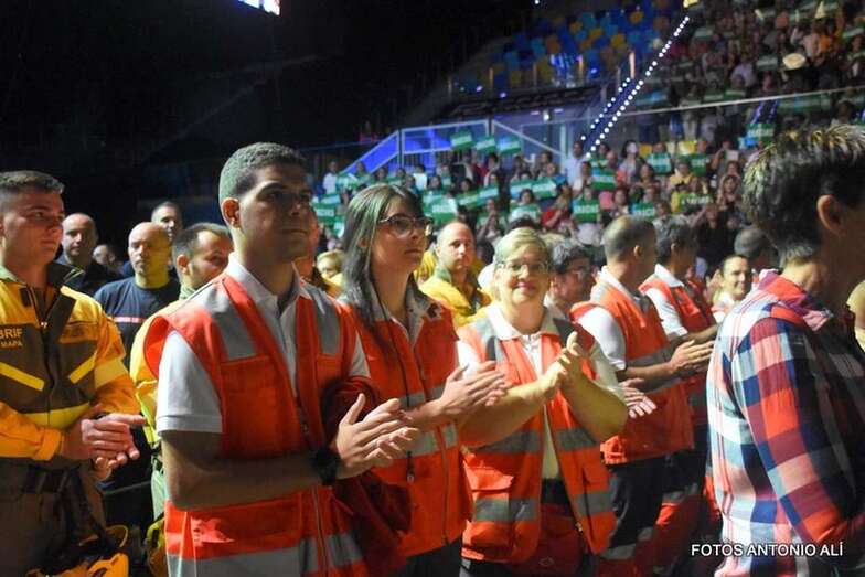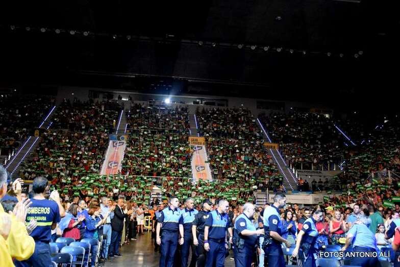Telde.- Siete mil personas abarrotaron anoche el Gran Canaria Arena durante el encuentro “Cumbre de mi Gran Canaria” que homenajeó a los afectados por los incendios de agosto, así como a todos los que lucharon contra el fuego, tanto en la extinción, la seguridad de las personas y atención a los desalojados de sus viviendas, y a la vez sirvió para enviar un mensaje de esperanza.