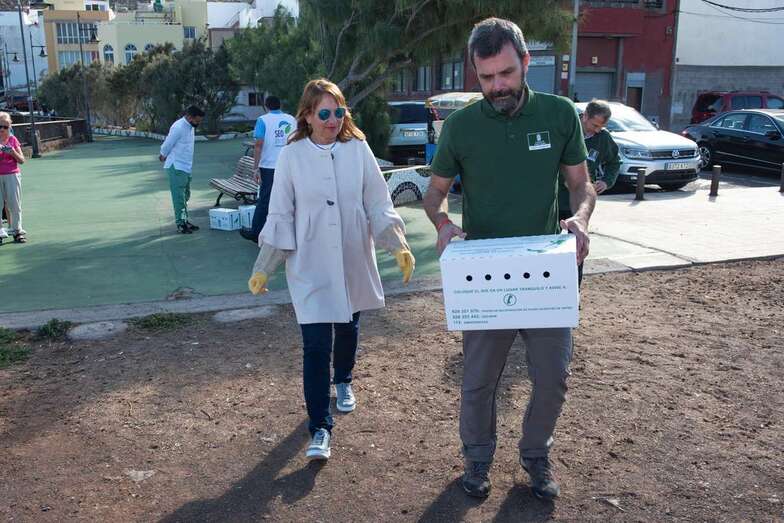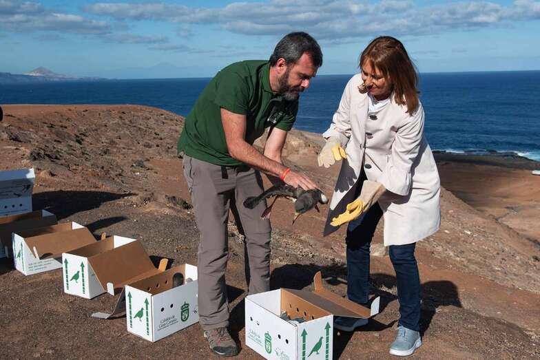 La consejera de Medio Ambiente, la teldense Inés Jiménez, realizó este jueves la primera suelta de cinco ejemplares en la zona de Las Coloradas, en la capital grancanaria, que dio el pistoletazo de salida a esta campaña. Iniciativa que se desarrollará durante quince días, del 25 de octubre al 10 de noviembre,y en los que estudiantes, asociaciones y voluntariado liberarán con el Cabildo cientos de pollos de pardelas recogidos por voluntarios en distintos puntos de la Isla y curados en el Centro de Recuperación de Fauna Silvestre de la Institución insular.