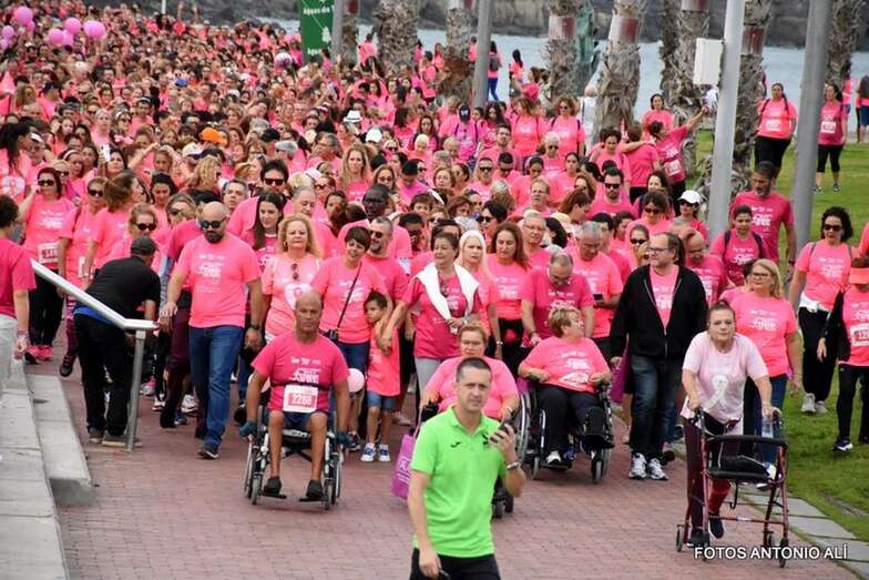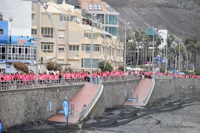 Telde.- Las Canteras se ha llenado esta mañana de una marea rosa con el fin de visibilizar la lucha contra el cáncer de mama y reclamar más financiación para investigar tratamientos, una iniciativa solidaria en la que participaron decenas de teldenses.