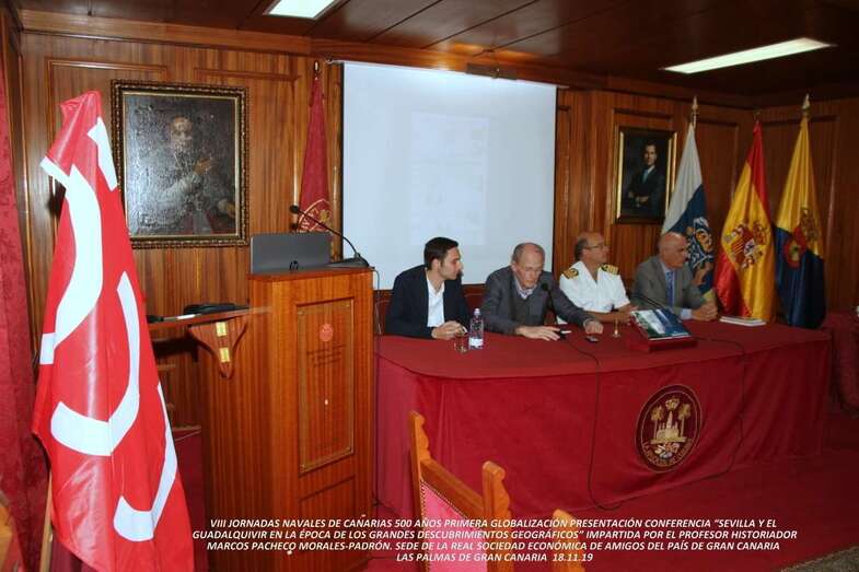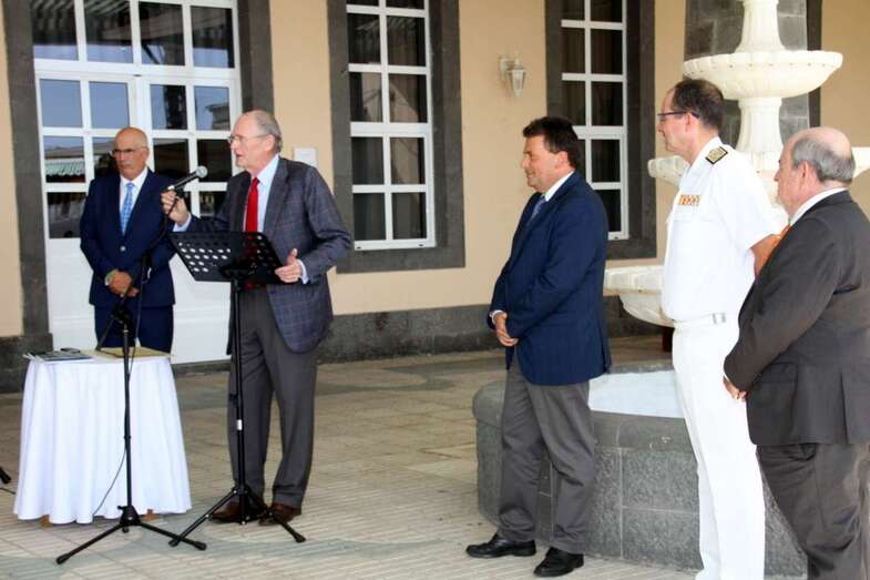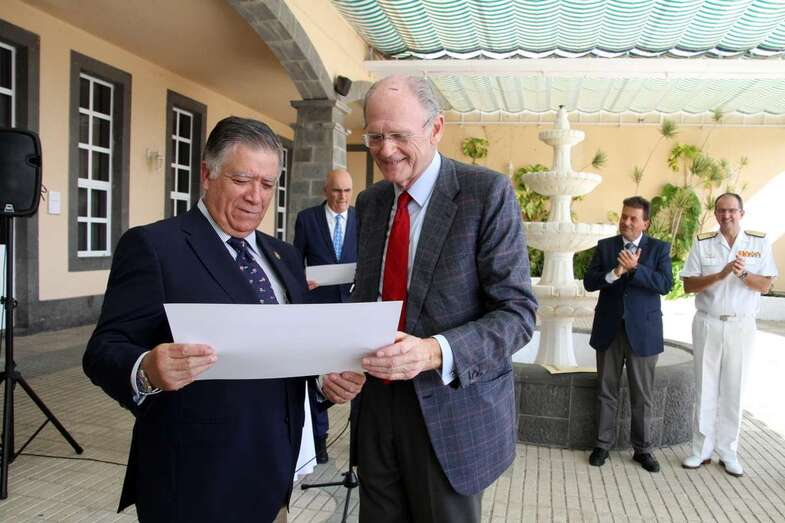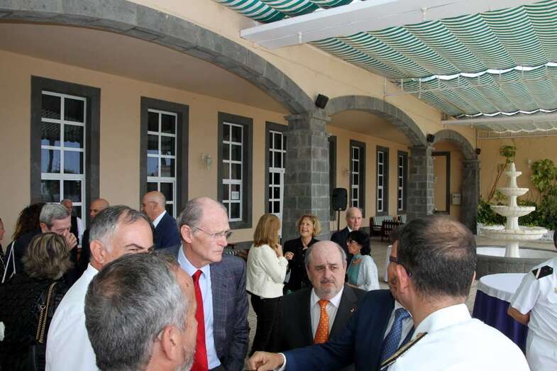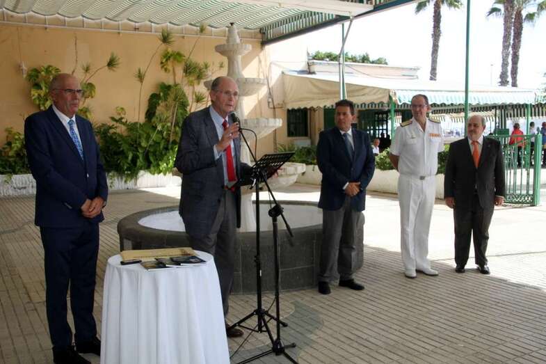 Finalizo mi intervención para rendir homenaje a alguien que ha estado 14 años haciendo las Jornadas Navales, organizando programas y actos, él solo, permítanme reconocer y agradecer este trabajo al compañero de la Junta Directiva de la Real Sociedad Económica, don Juan José Laforet Hernández. Apoyado en una actividad de una imaginación, de organización y trabajo casi ilimitada. Muchísimas gracias. Igualmente, el agradecimiento a los Almirantes Jefes del Mando Naval, siempre nos ayudan de forma generosa. Muchísimas gracias al presidente de la Autoridad Portuaria y presidente de Asoclub, empresas e instituciones, y a todos ustedes. Gracias”.
