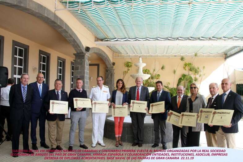 Las VIII Jornadas Navales de Canarias 2019 organizadas por la Real Sociedad Económica de Amigos del País de Gran Canaria y la Armada Española, llegan a su clausura con la entrega de diplomas y reconocimientos en el acto que tuvo lugar en la Base Naval, el viernes 22 de noviembre con asistencia de las Autoridades Civiles, Militares, representación de instituciones y empresas colaboradoras y participantes de las Jornadas.