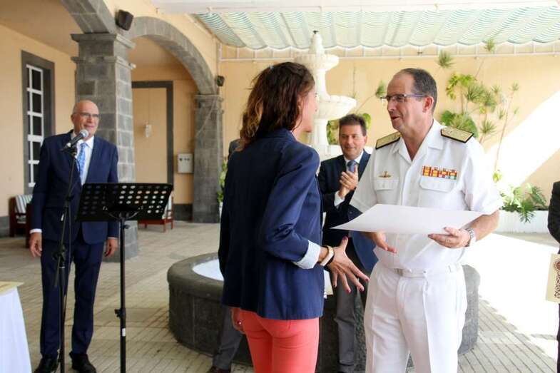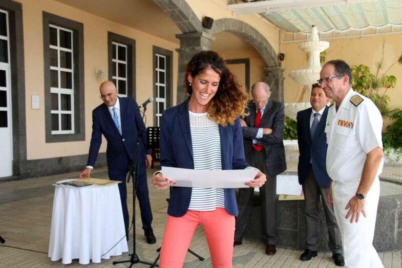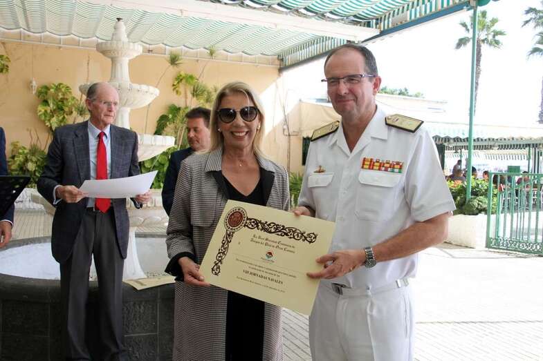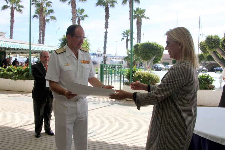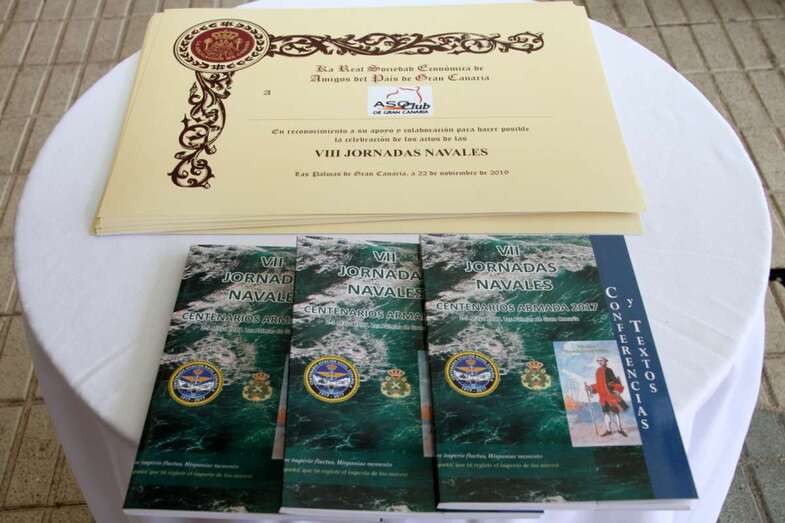 El Almirante entrega el Diploma a la representante del Clúster Marítimo. Como sede de actos de las VIII Jornadas Navales, el Real Club Náutico de Gran Canaria.  Real Club Victoria por su participación y colaboración.  Entre las entidades patrocinadoras y del monumento al V Centenario de la primera vuelta al mundo, el Aquarium Poema del Mar, el Almirante del Mando Marítimo de Canarias hace entrega del Diploma acreditativo.