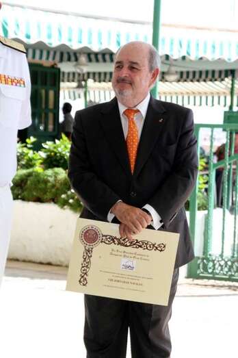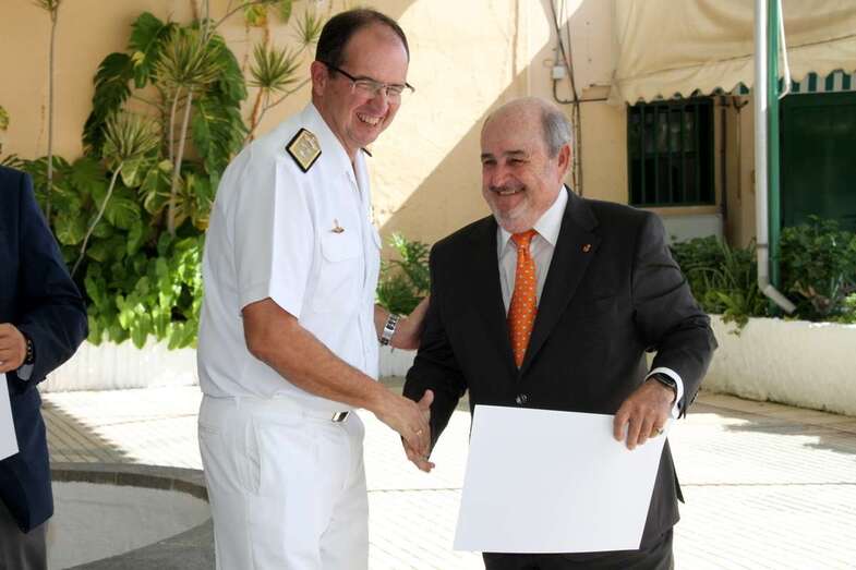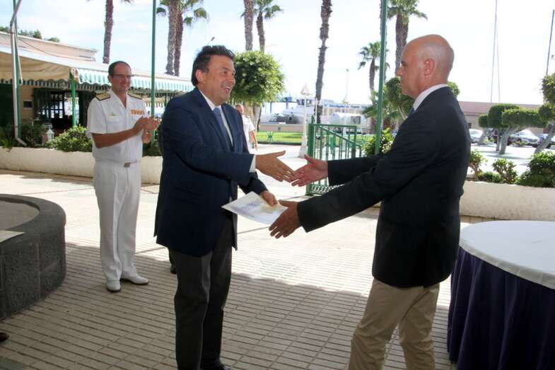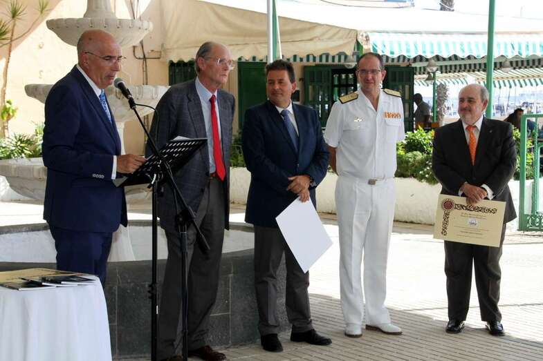 En primer lugar, a la empresa e Institución Pública siempre presente en las Jornadas Navales, Puertos de Las Palmas Autoridad Portuaria de Las Palmas. Diploma a Asoclub de Gran Canaria en la persona de su presidente don Juan José Benítez de Lugo, entrega el galardón el Almirante Jefe del Mando Naval de Canarias, Excmo. Sr. D. Pedro Luis de la Puente García-Ganges.