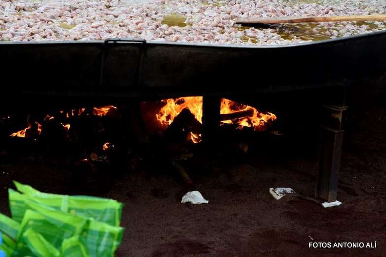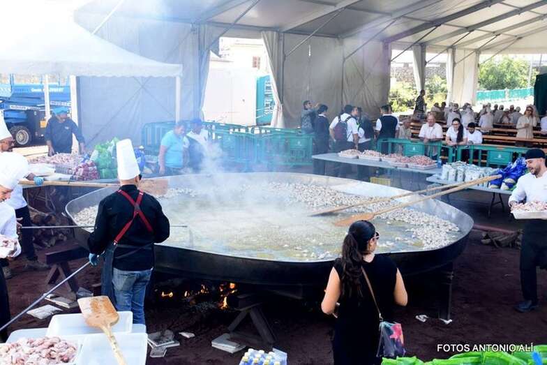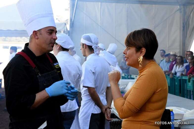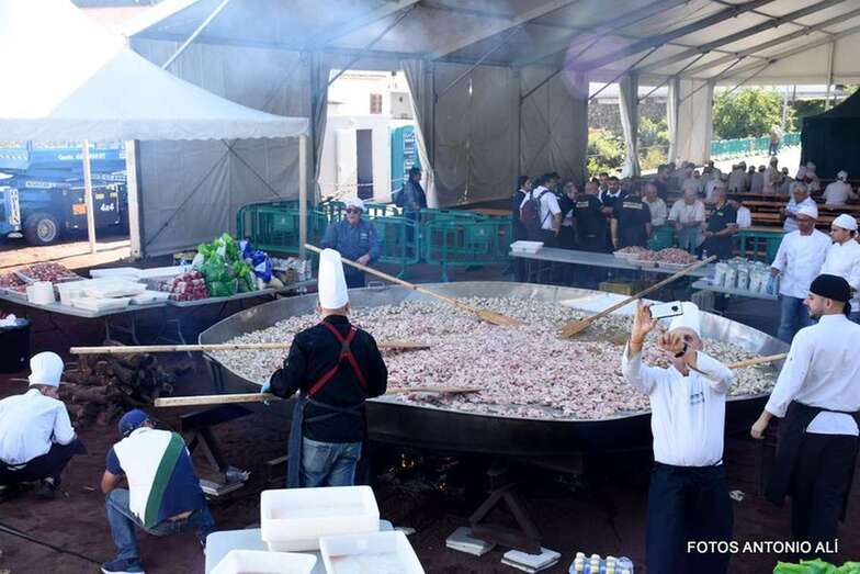 La primera de las citas organizadas por el Ayuntamiento moyense con este fin ha cumplido con creces el objetivo y ha superado todas las expectativas, incluso para los responsables de cocinar una paella de tales dimensiones. Por ejemplo, el chef Aridane Rivero se mostró muy satisfecho con el resultado final de la receta “pese a que el arroz bomba, que hemos traído desde Valencia para la ocasión, requiere un cocinado más complejo porque es muy delicado”.