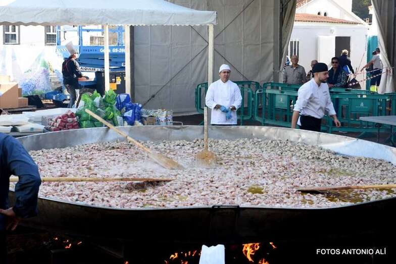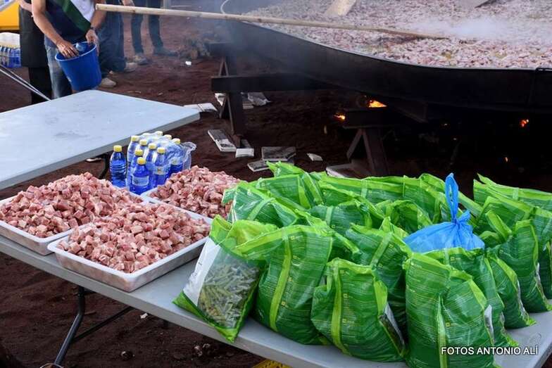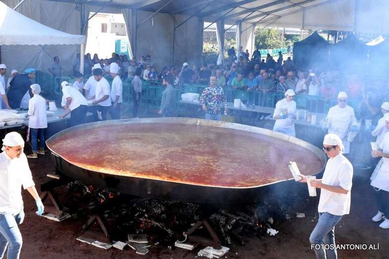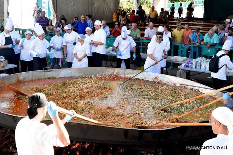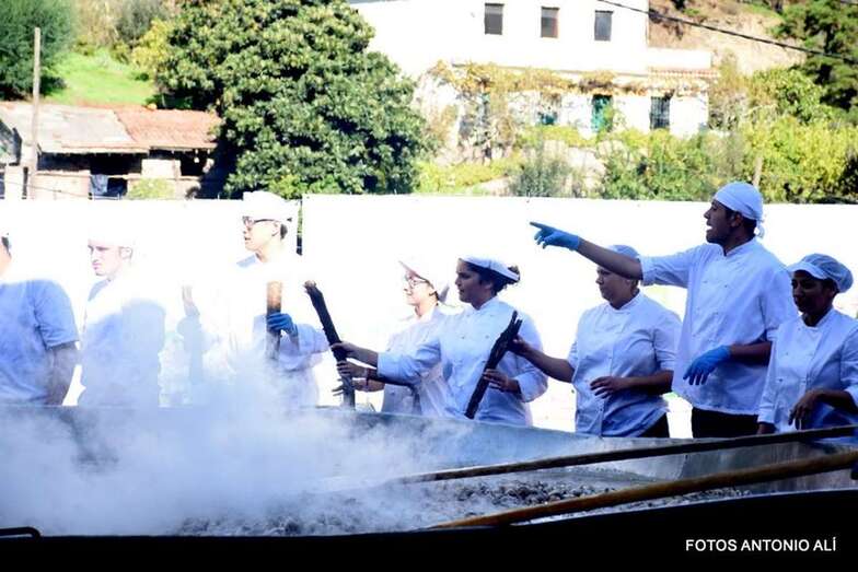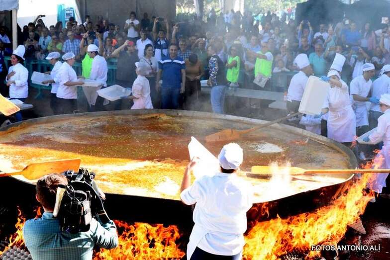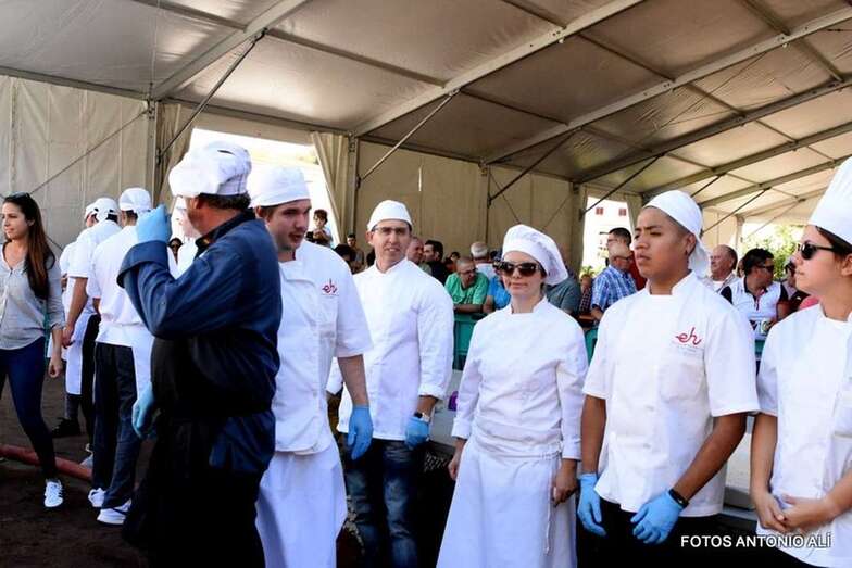 Telde.- El pago moyense de Fontanales ostenta desde este sábado el récord de la paella más grande de Canarias, con las siete mil raciones elaboradas por el chef grancanario Aridane Rivero y el maestro paellero valenciano Abundi Monterde, junto a un equipo de siete cocineros profesionales y cuarenta estudiantes de diferentes centros de hostelería de Gran Canaria.