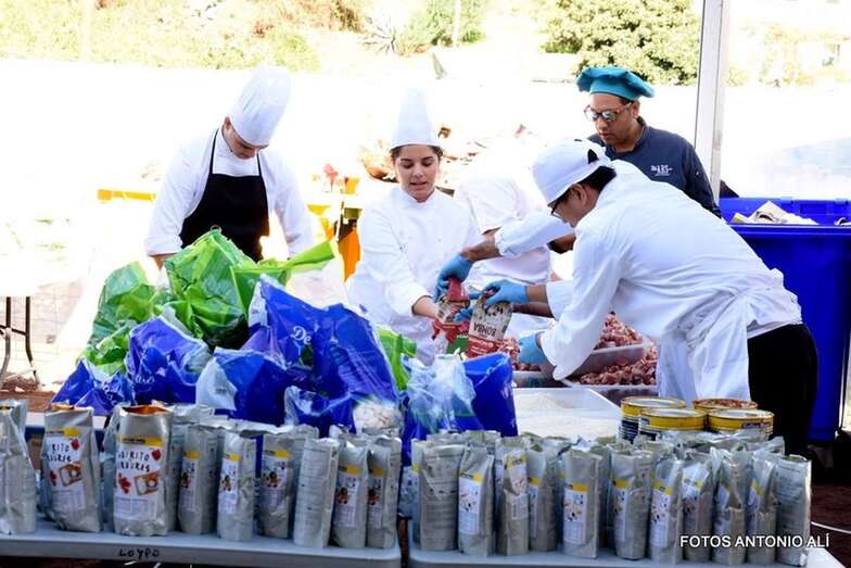 Asimismo, Rivero resaltó que “en un principio era muy complicado batir el récord y poder cocinar siete mil raciones perfectas, pero todos hemos sido una piña y cuando se trabaja con tanta pasión, no hay dificultades que no se puedan superar”. En este sentido, el chef agradeció el despliegue de medios técnicos y de personal dispuesto por el Consistorio moyense y “la labor que ha desempeñado todo el equipo de cocina, desde los cocineros profesionales y ayudantes, hasta los estudiantes” de la Escuela de Hostelería de Las Palmas, del IES Felo Monzón-Grau Bassas y el IES Bañaderos. “Además, nos han dicho que la paella ha quedado muy buena, así que doblemente orgullosos de participar en esta iniciativa solidaria”, concluyó Aridane Rivero.