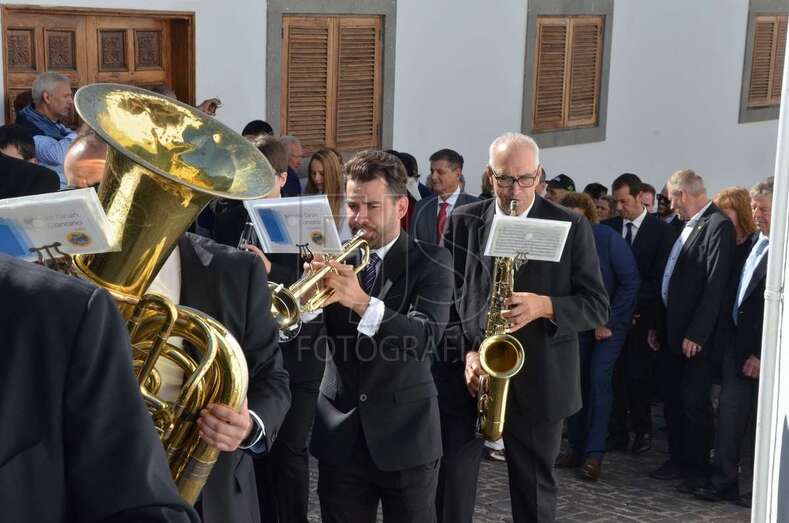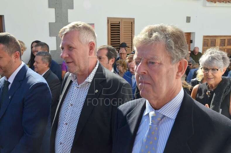 Después de la ofrenda la Corporación Municipal y la delegación sueca vivieron un acto de hermanamiento en el que intercambiaron regalos de Canarias y de Suecia. El alcalde entregó a los representantes de la delegación nórdica un balayo de junco y anea hecho por el artesano santaluceño Juanito Ramírez.