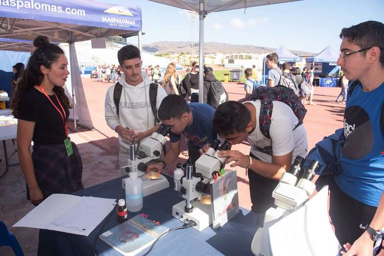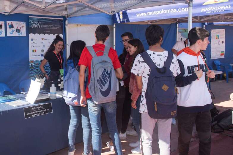 Durante la mañana el alumnado tuvo ocasión de conocer diversidad de proyectos, como el cocoom, un depósito de agua que está proporcionando importantes resultados en las repoblaciones del Cabildo en Gran Canaria, o disfrutar de los quince proyectos presentados a través de unas gafas de realidad aumentada, aparte de navegar en otras curiosidades como las algas marinas que sorprendieron en Canarias en el verano de 2017, que no solo no son nocivas ni cancerígenas, sino beneficiosas, las samaritanas las llaman los investigadores comandados por Javier Arístegui.